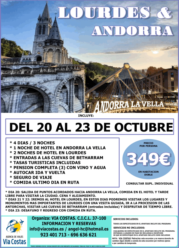 Vive la espiritualidad de Lourdes y disfruta el encanto de Andorra la Vella.