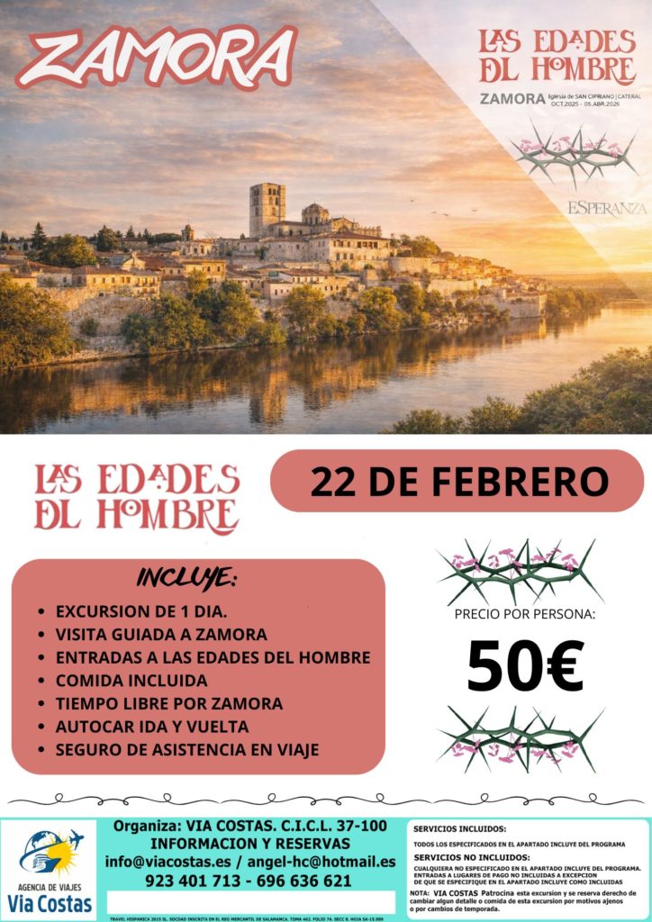 Disfruta de una excursión cultural de un día a Zamora, una ciudad llena de historia, arte y encanto, perfecta para una escapada diferente. Un viaje pensado para descubrir su esencia, pasear por sus calles y vivir una de las citas culturales más destacadas del año: Las Edades del Hombre: Esperanza.